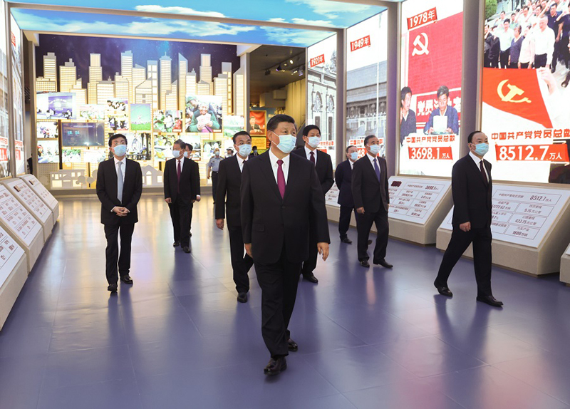 新近落成的中國共產(chǎn)黨歷史展覽館巍然矗立,氣勢恢宏。下午3時(shí)20分許,習(xí)近平等黨和國家領(lǐng)導(dǎo)同志來到這里,步入展廳參觀展覽。展覽以“不忘初心、牢記使命”為主題,精心設(shè)計(jì)了“建立中國共產(chǎn)黨 奪取新民主主義革命偉大勝利”、“成立中華人民共和國 進(jìn)行社會主義革命和建設(shè)”、“實(shí)行改革開放 開創(chuàng)和發(fā)展中國特色社會主義”、“推進(jìn)中國特色社會主義進(jìn)入新時(shí)代 全面建成小康社會 開啟全面建設(shè)社會主義現(xiàn)代化國家新(人民日報(bào))征程”4個(gè)部分,通過2600余幅圖片、3500多件套文物實(shí)物,第一次全方位、全過程、全景式、史詩般展現(xiàn)中國共產(chǎn)黨波瀾壯闊的百年歷程,濃墨重彩地反映黨的不懈奮斗史、不怕犧牲史、理論探索史、為民造福史、自身建設(shè)史,使人們深刻認(rèn)識到紅色政權(quán)來之不易、新中國來之不易、中國特色社會主義來之不易,深刻認(rèn)識到中國共產(chǎn)黨為什么能、馬克思主義為什么行、中國特色社會主義為什么好。