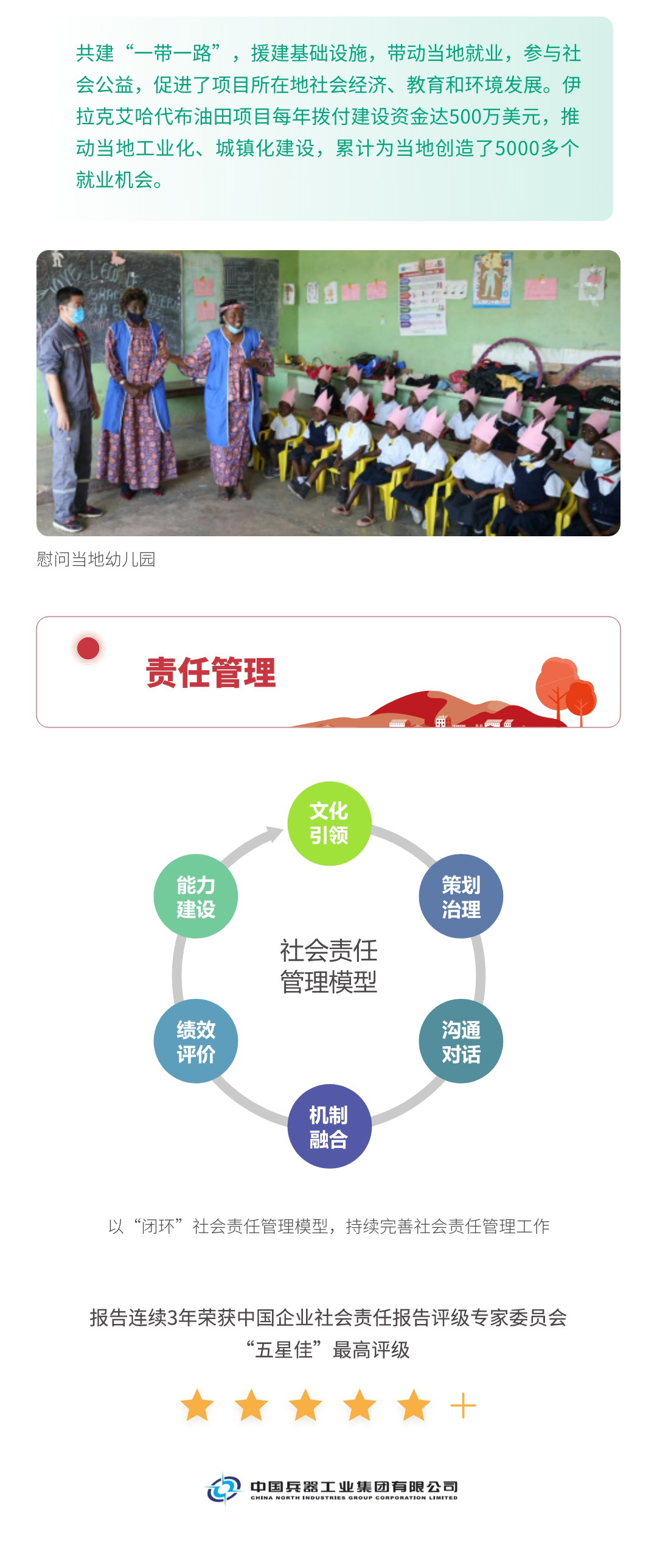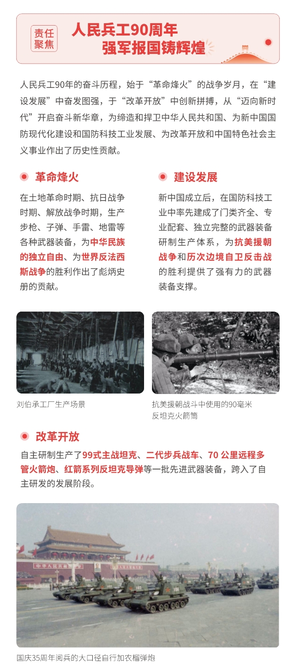 近日,兵器工業(yè)集團(tuán)正式發(fā)布第十三份年度社會(huì)責(zé)任報(bào)告——《中國(guó)兵器工業(yè)集團(tuán)有限公司2021年社會(huì)責(zé)任報(bào)告》,以“用心守護(hù)和平、用力爭(zhēng)創(chuàng)一流、用情溫暖社會(huì)”為主題,從恪守強(qiáng)軍首責(zé)、服務(wù)經(jīng)濟(jì)建設(shè)、共創(chuàng)美好生活三個(gè)維度,向社會(huì)全面披露2021年度履責(zé)實(shí)踐和履責(zé)業(yè)績(jī)?!秷?bào)告》連續(xù)第三年獲得中國(guó)企業(yè)社會(huì)責(zé)任報(bào)告評(píng)級(jí)專(zhuān)家委員會(huì)“五星佳”評(píng)級(jí),兵器工業(yè)集團(tuán)成為軍工行業(yè)唯一連續(xù)11年獲得五星及五星佳最高評(píng)級(jí)的企業(yè)。 一圖解碼兵器工業(yè)的“責(zé)任力量” |
