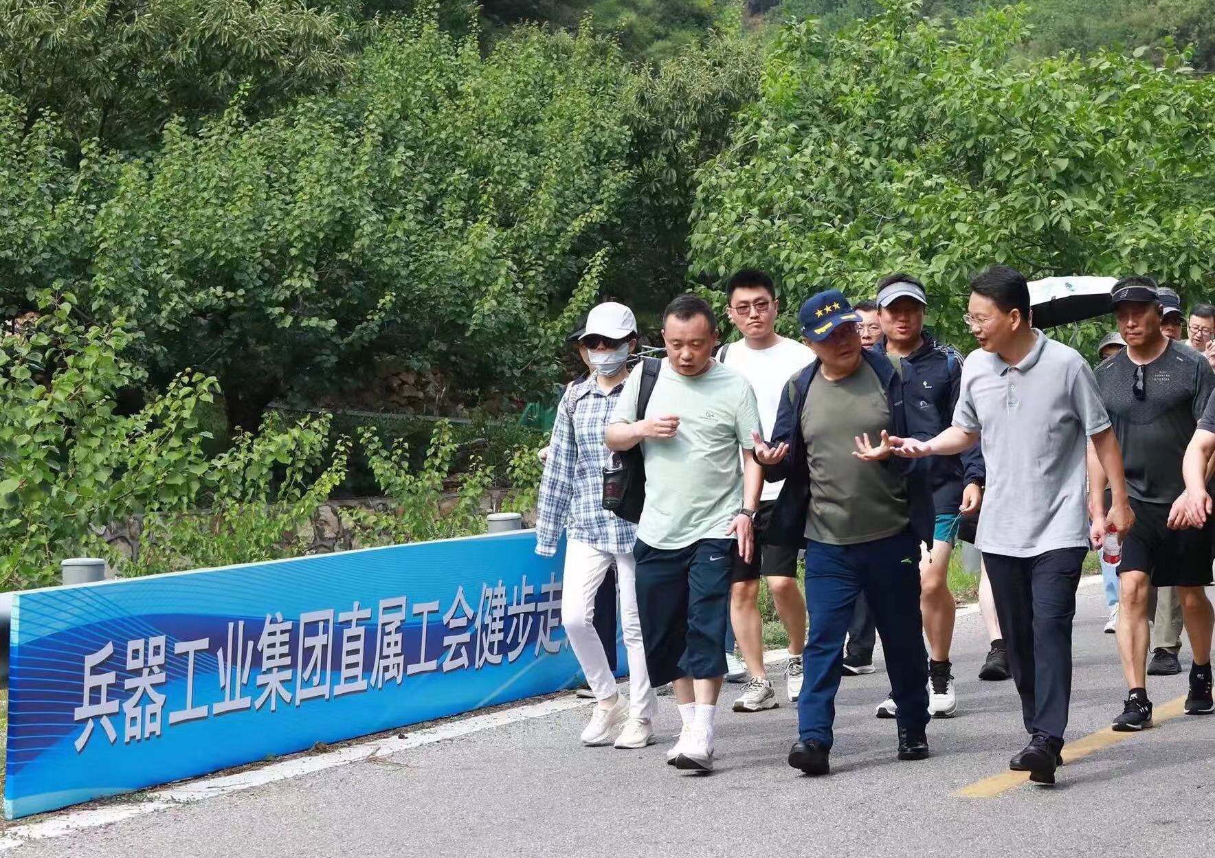 為貫徹落實(shí)黨的二十大關(guān)于深入開(kāi)展健康中國(guó)行動(dòng)的部署要求,培育職工健康生活方式,豐富職工文化生活,提高職工身體素質(zhì),增強(qiáng)團(tuán)隊(duì)凝聚力,6月29日,中國(guó)兵器工業(yè)集團(tuán)有限公司直屬工會(huì)組織總部、在京直屬單位職工800余人在平谷區(qū)北寨國(guó)際徒步大道開(kāi)展了職工健步走活動(dòng)。集團(tuán)公司黨組書(shū)記、董事長(zhǎng)程福波,黨組成員、總會(huì)計(jì)師張華參加活動(dòng)。